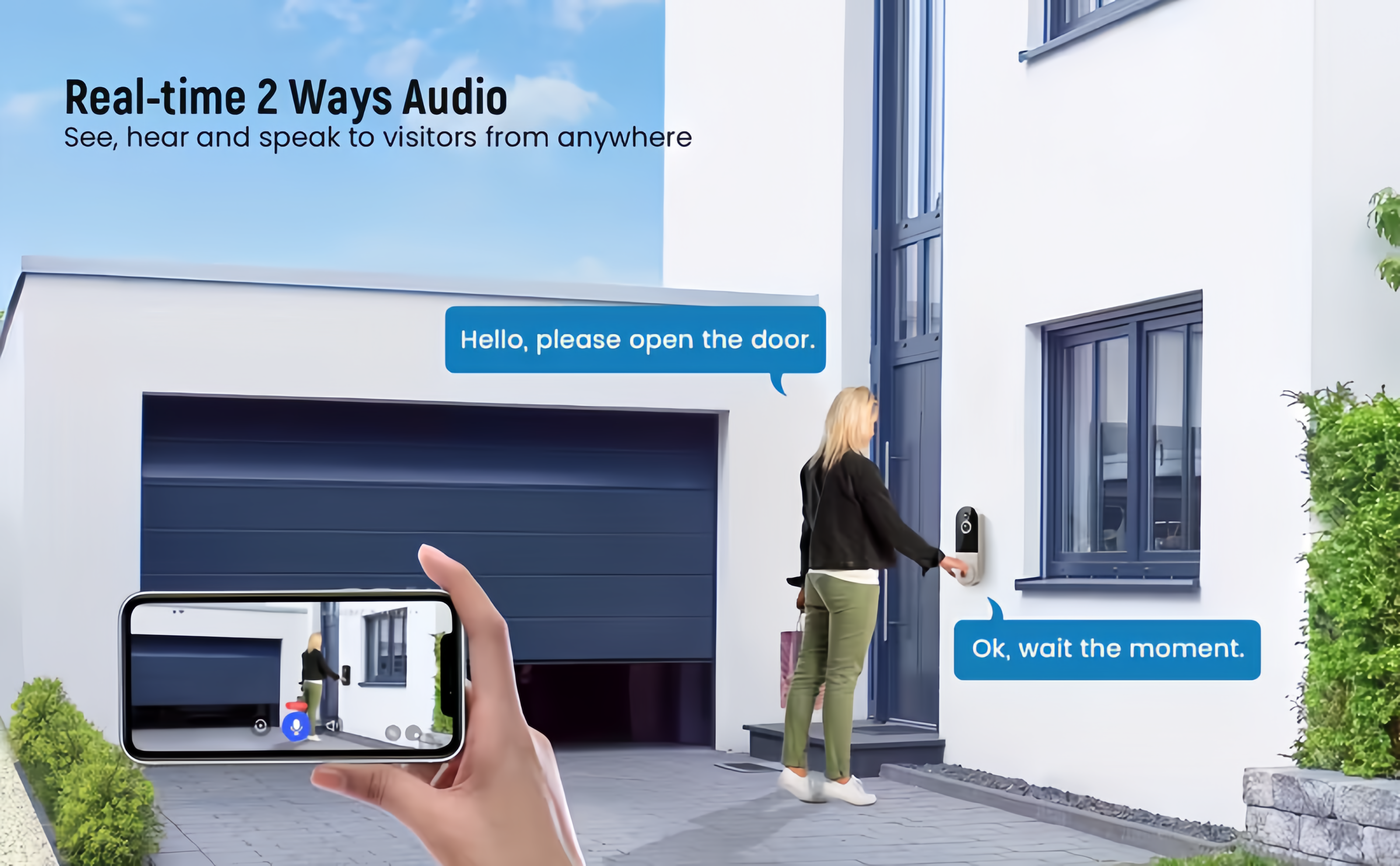 With Doorbell Camera, you'll never miss an important visitor or package again!Our smart Wi-Fi doorbell gives you instant video access and two-way talk, soyou can answer the door even when you're miles away.